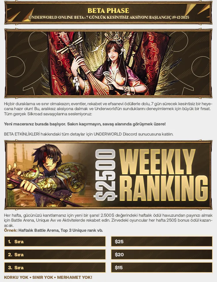 UNDERWORLD SRO sunucusunun Silkroad private server tanıtımı, SROTR platformunda yayınlanmıştır. Tanıtım içeriği ve görseller ilgili sunucuya aittir. UNDERWORLD SRO sunucusuna Silkroad Online dünyasında başarılar dileriz.